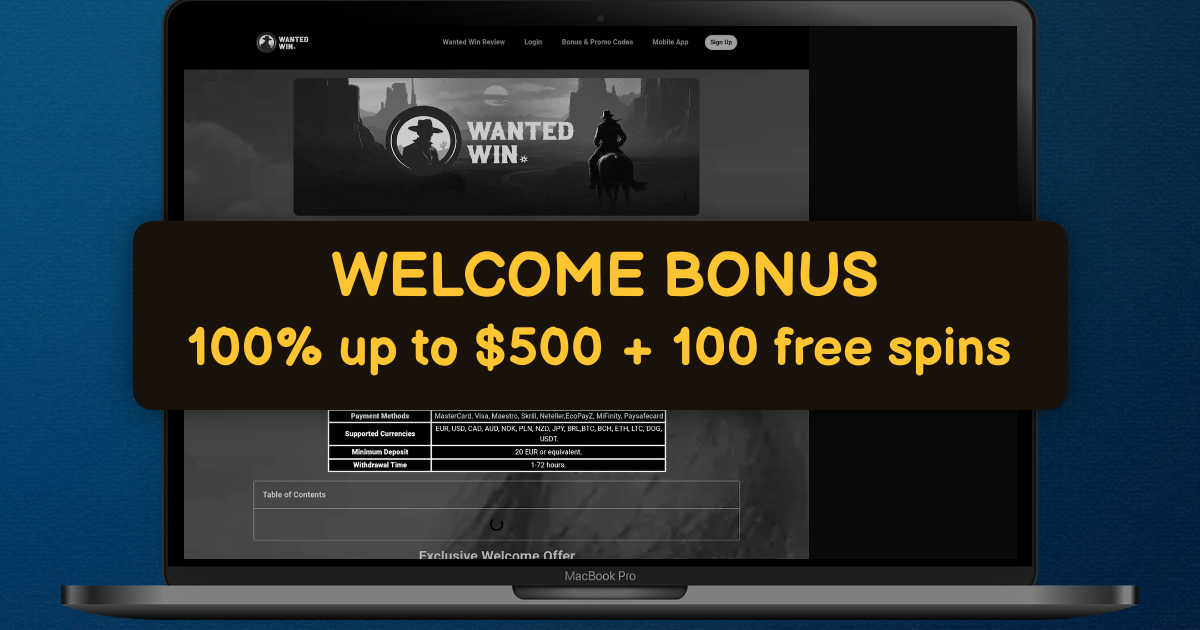 | Name of the Website | Wanted Win Casino |
